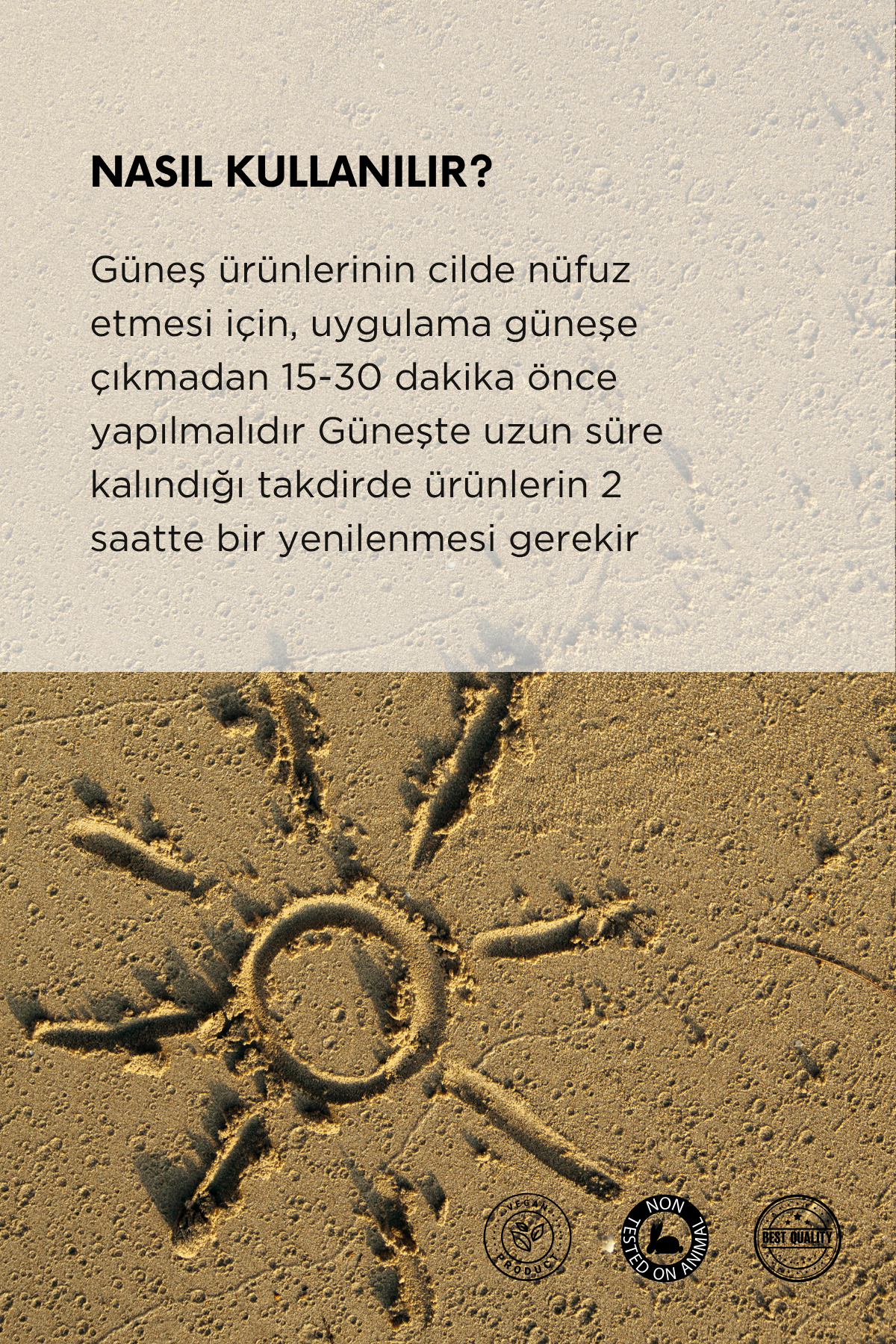 Güneşe çıkmadan 15-20 dakika önce yüz ve boyun bölgesine yeterli miktarda uygulanır.