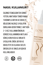 Cildi nazikçe arındırmak ve gözenekleri temizlemek için özel olarak geliştirilmiş vücut toniğidir. İçeriğindeki Glikolik Asit, cildin yenilenmesine destek olurken; Panthenol ve Gliserin, yoğun nemlendirme sağlar. Düzenli kullanımda cildin daha pürüzsüz, canlı ve ferah bir görünüme kavuşmasına yardımcı olur.