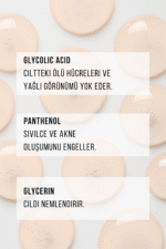 Glikolik Asit içeriği nedeniyle ciltte güneş hassasiyeti oluşabilir; kullanım süresince ve sonrasında güneş koruyucu kullanılması önerilir.
